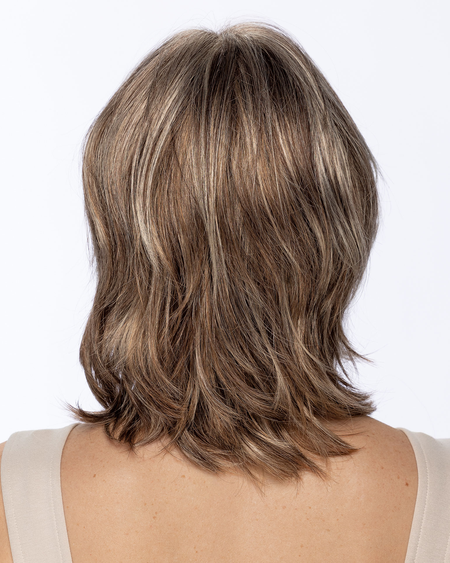 This lightweight Paula Young® WhisperLite® Greer Wig is softly layered and flattering from every angle. Gentle movement is cut into the crown and sides, while the back tapers into a subtle V for natural shape and definition. Angled layers frame the face beautifully, and side-swept bangs blend in for an effortless finish.