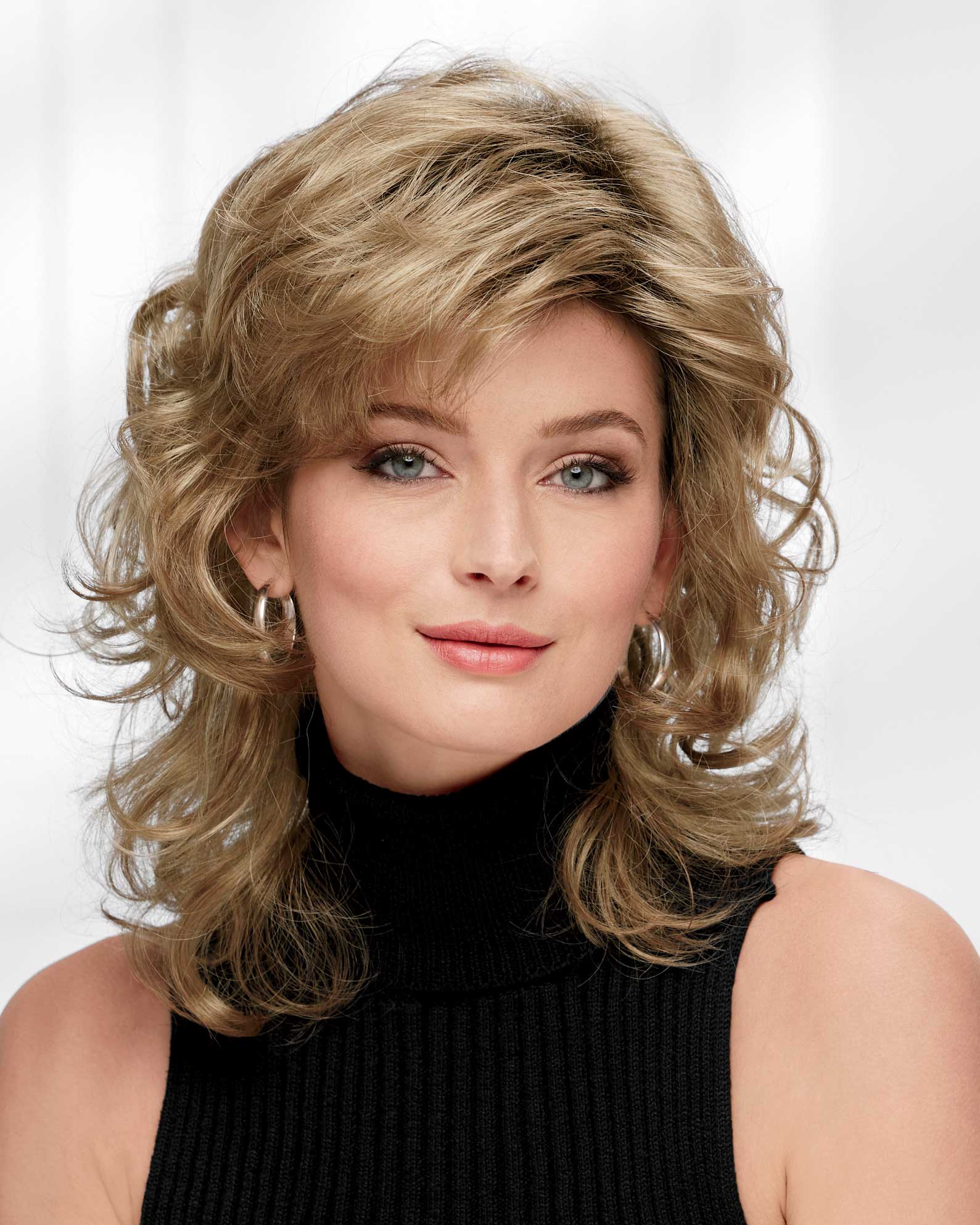 Sexy side-parted long with wavy shoulder-length layers and swept bangs. Flattering face-framing layers of soft waves give this sexy side-parted long wig an abundance of touchable texture and natural-looking movement. The swept bangs accentuate the eyes, and the full sides and back complete the shoulder-length wavy hairstyle.
